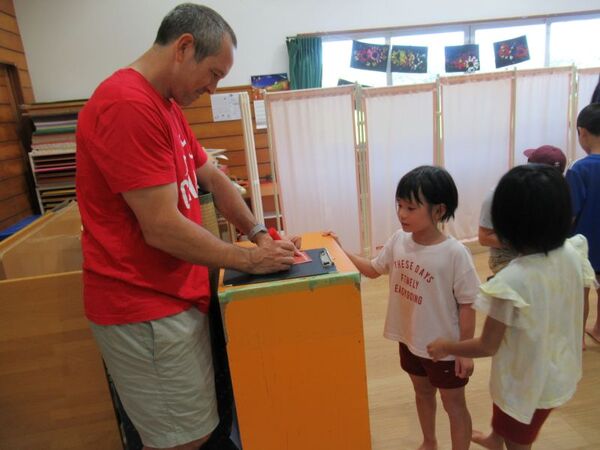 先生は、最初から最後までずっと英語だけで話しかけられ、びっくりしていた子どもたちでしたが、